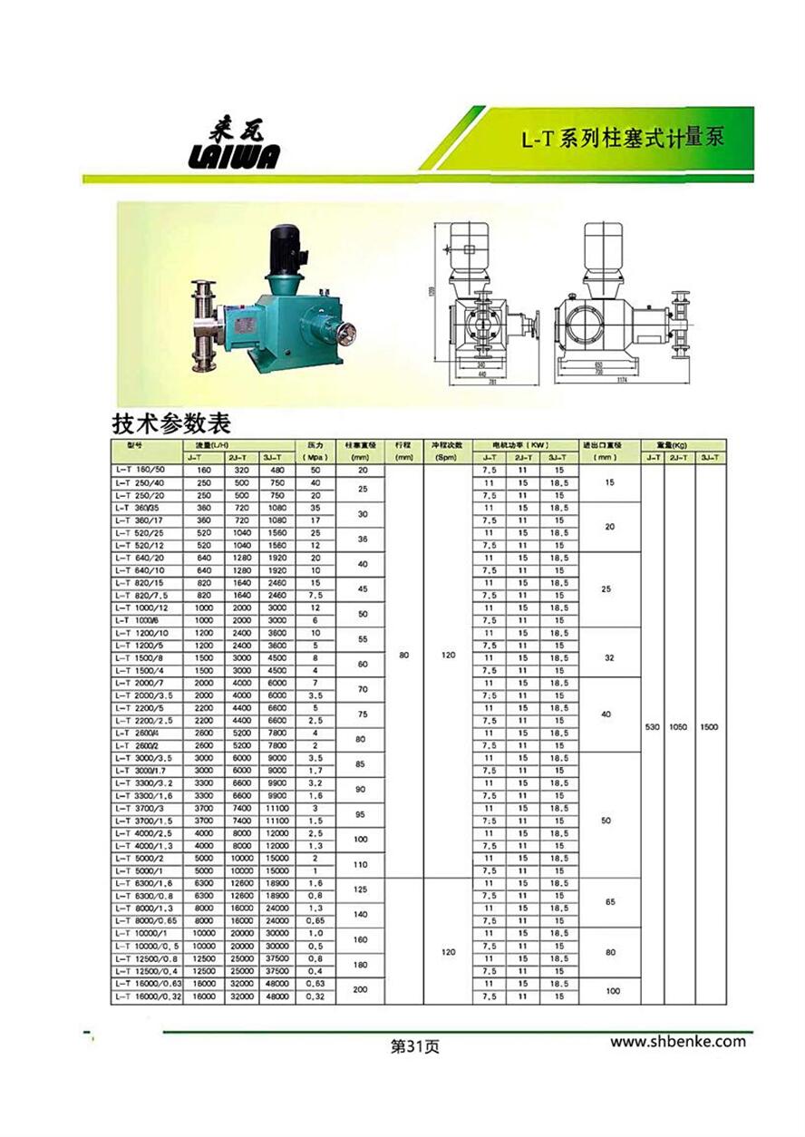 來瓦L-T柱塞計量泵